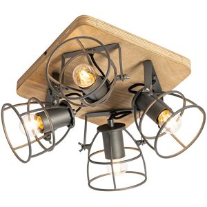 QAZQA Industrial spot steel with wood tiltable 2-light - Emado Video A rugged spot, ideal for any industrial interior! The combination of the burnt steel and the wooden mounting plate give this lamp an industrial look. It looks amazing in the hallway or in the living room. The two spotlights are tiltable, making them ideal for filling any dark corners in your home with light! It is 18 cm tall, the wooden mounting plate is 17 cm long and 11 cm wide. The spot has a diameter of 11.5 cm. The lamp has two GU10 fittings and is delivered without light bulbs, so make sure to order these separately (max. 25 watts). The Emado surface-mounted spotlight is dimmable with an external dimmer (dimmer not included). You can mount this atmospheric lamp to the wall or the ceiling. Finish off your interior with this Emado! Bulb holder: GU10 . Max 2 x 25 W, 230 V Suitable for: Halogen, Led Connecting voltage: 220V/230V Protection class: IP20 Dimmable, dimmer not included,No, without cord and plug