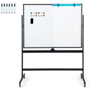 Perfect for both adults and kids, this double sided lockable whiteboard will become an essential tool for teaching, presentations, and more! Featuring adjustable height, this whiteboard is suitable for users of different ages. In addition, featuring a sturdy aluminum tube frame, the flipchart board is built to last. Not to mention the 360 flip mechanism with a locking button, which allows for effortless flipping to the other side to meet your writing space need. For added convenience, the whiteboard comes with a marker tray to keep your markers organized and within easy reach. Further more, included in this product are 6 black markers, 1 board eraser, 12 magnets, 2 clips, 25 writing papers, and 2 installation tools, and with this comprehensive set, you have everything you need to get started right away. Last but not least, the board is equipped with 4 lockable wheels to provide excellent mobility and stability durinfg use. Whether you're in a classroom, office, or home setting, this whiteboard is the perfect tool for brainstorming, teaching, presentations, and more. Get yours today and experience the convenience and versatility this whiteboard offers! Costway Double Sided Magnetic Whiteboard Adjustable Mobile Revolving Board with Magnets in White