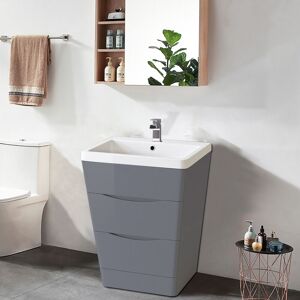This modern double drawer bathroom vanity unit will keep your room organized. Our storage cabinet exudes sophistication, while its gloss grey finish is a perfect fit for monochromatic or vibrant spaces. It features a durable resin basin. Plus, it is supplied pre-assembled, you just need to place the basin on the cabinet and seal the edges. This functional floor standing storage unit is a must-have addition to your furniture ensemble. Features -Floor Standing 800mm double drawer vanity unit with basin. -Single tap hole resin basin. -Luxurious gloss grey finish. -Grooved handles and soft-closing technology. -Luxury soft closing drawers. -Pre-assembled for your convenience (simply place the basin on the cabinet and seal the edges). -Tap & waste are not included. -Dimensions: (W x D x H): 800 x 450 x 850 mm -10 year warranty. Note:Please note that the actual colour of the item may be slightly different than what is shown on the photos. The P&P is only for those addresses in Mainland