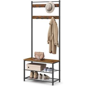 [3-in-1 Coat Rack] Coat hooks, a shoe bench, and a shoe rack—this all-in-one multipurpose hallway storage unit alone suits all your needs to hang clothes, organise shoes, and sit down to put on or take off your shoes[9 Sturdy Hooks] 9 rust-resistant metal hooks in 2 rows, each holds up to 3 kg, are sturdy and durable, offering lots of hanging space for your coats, bags, hats, scarves, and other to-go items—perfect for long-term use[Sturdy and Stable] Supported by a sturdy steel frame and levelled by 4 adjustable feet, this coat stand for hallway gives your items stable support; the included anti-tip kit enhances the overall stability[Shoe Bench with Shelves] The bench of this coat stand allows you to sit down at ease thanks to the 90 kg of weight capacity. You can also use it as a storage shelf to oganise shoe boxes and storage bins or display plants and decorations Williston Forge