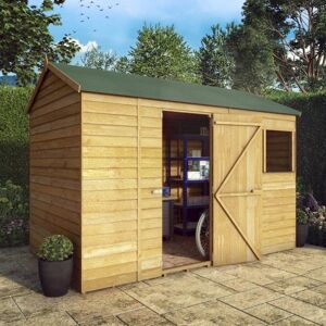 This 10 x 6 Overlap Apex Wooden Windowless Shed offers a spacious and affordable storage solution. Whether you’re a keen gardener or you’re in need of a place to store garden furniture and accessories, this building could be just what you’re looking for. Featuring double doors, this building is great for accessing and storing larger items such as lawn mowers, bicycles and wheel barrows. The windowless design will ensure your belongings remain safe, secure and out of sight. The walls on this garden building are formed using horizontal boards that overlap each other, this traditional method of construction creates solid panels that encourage rain water to run off the building, protecting your stored belongings from the elements. Complete with strong wooden internal framing, this building offers a rigid and long-lasting structure. The traditional apex roofline ensures there is plenty of height inside for taller items and storage units. The floor and roof are constructed using solid sheet board, a durable material made up of several layers of tightly compacted oriented strands. Solid sheet board is perfect for everyday general use and storage. Robust roofing felt, fixtures and fitting are all supplied as standard, alongside detailed instructions and manufacturers recommendations to ensure a simple, stress free assembly process. This building comes with an Anti-rot guarantee, to ensure your garden building looks great and lasts the test of time, this building in particular comes with a conditional 10 year Anti-rot guarantee as well as a 12 month manufacturer’s warranty. Annual re-treatment is required to maintain your building and the Anti-rot guarantee.