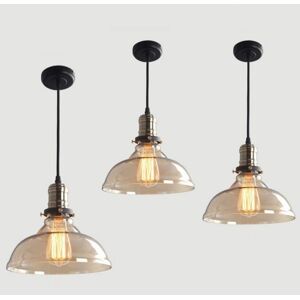 WOTTES 3-pack Vintage Glass Pendant Light Industrial Hanging Ceiling Lamp Adjustable Chandelier Amber Ø20cm