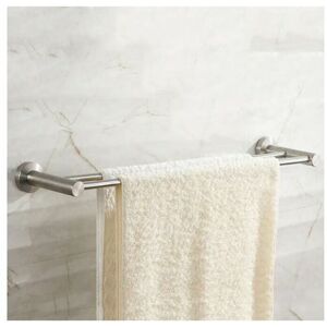 Dual rail towel rail Total length 19.7 inches (500mm) The wall bracket makes the towel rack strong and resistant to hanging which can be long to use Stainless steel towel bar, non-toxic and lead-free, offering better resistance to corrosion and rust The brushed nickel finish towel rack is suitable for the modern contemporary bathroom style