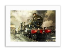 Artery8 Steam Train Vintage Colour Red Green Vintage A4 Artwork Framed Wall Art Print White One Size