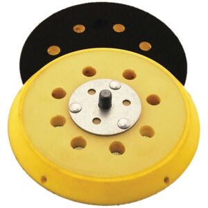 Description This is a dual action orbital sander pad designed for use with random orbital sanders. It features a durable polyurethane backing and a standard profile with a fibreglass back plate, ensuring toughness and longevity. Made in Great Britain, it offers medium flexibility for effective sanding performance. Specifications Diameter: 125mm Backing material: Super polyurethane Profile: Standard Back plate: Ultra tough fibreglass Holes: 8 + 1 Holes E65 Thread: 5/16UNF + M8 Maximum RPM: 10,000 Compatibility and Accessories Compatible with random orbital sanders that accept 125mm backing pads Designed to fit with accessories that have 5/16UNF or M8 threads Installation Attach the pad securely to the sander's backing plate, ensuring the threads match (5/16UNF or M8) Ensure the holes align properly for optimal dust extraction and performance Usage Use with appropriate abrasive discs for sanding tasks Operate at a maximum of 10,000 RPM for safe and effective sanding