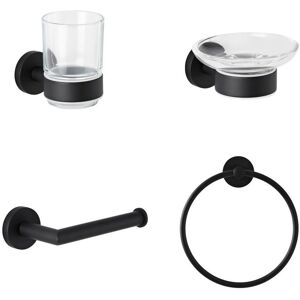Coordinate the modern look of your bathroom and add the stylish finishing touches to tie it all together with the Milano Nero three piece bathroom accessory set which consists of a toilet roll holder tumbler and soap dish. Featuring an attractive matte black finish throughout the accessory set offers neat installation to the wall thanks to its concealed fixings. Benefitting from premium quality solid brass and toughened glass construction you can be sure that the contemporary accessories will last for years to come. - Matching bathroom accessory set to create a coordinated look - Includes a toilet roll holder tumbler and soap dish with holders - Solid brass and toughened glass construction ensures durability - Matte black powder coated finish for a contemporary look - Features concealed wall fixings for neat installation - Supplied with a fixing kit for all the accessories - This product is covered for 2 years