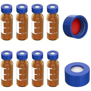 2 mL amber autosampler vial, 12 mm diameter, 32 mm height, 9-425 thread. Our capped vials are widely used in standard HPLC and applications. Due to their technical geometry, these vials can be used with all common autosamplers, preferably Agilent, HTA, Shimadzu, , Varian, Waters, etc. The 2ml vial is made of high quality borosilicate glass with low free ion content, low coefficient of expansion and very high chemical resistance. Suitable for maintaining all acidic, neutral and alkaline pH injections. Temperature range from -76Fahrenheit to 248Fahrenheit. Autosampler vials with screw design consistent sealing. Pre-slit septa reduce flat needle bending and prevent negative pressure in vials when collecting large numbers of samples. perfect for compound sample storage in the chemical industry, pharmaceutical industry and scientific laboratories. Amber vial with large writing patch for sample identification and white printed graduations in 0.5 ml increments. This series of vials is