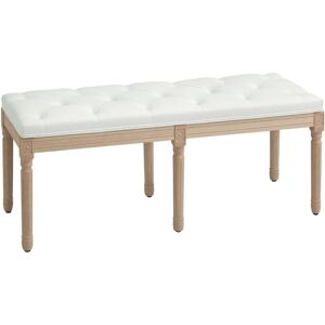 Elegant and practical seating with this HOMCOM bed end bench. The versatile design allows it to serve as a bench throughout the home, for whatever you need. The wooden frame means a strong core, with elegant carving all over to mimic a vintage french style. Fitted with a padded top to sit comfortably. Specifications: ● Colour: Cream White ● Materials: Linen (100% Polyester), Rubber Wood, Foam, Multilayer Board ● Overall Dimensions: 117W x 40D x 48Hcm ● Seat Thickness: 6.5cm ● Leg Height: 36cm ● Weight Capacity: 220kg ● Item Label: 831-733V70CW Features: ● Thick foam padding with linen-look upholstery for comfort ● French vintage style: carved brushed wood, fluted legs and button tufting ● A strong and supportive wooden frame, with protective foot pads ● A versatile piece. Use as a window seat, bed end bench, entryway bench and more ● Maximum load 220kg, assembly required