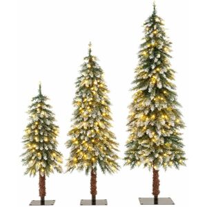 Make this year's celebrations truly unforgettable with our exquisite Christmas tree! The 688 snow-flocked branch tips offer an additional sense of awe, allowing you to immerse yourself in the enchanting atmosphere of a winter wonderland. Naturally dropping branches mimic the snow-covered appearance of real trees, making our fake xmas tree a classic festival decor. Additionally, the pre-lit Christmas tree contains 200 warm white LED lights to brighten and illuminate your space. Moreover, the tree is made with high-quality PE & PVC, which are non-flammable, allergic-proof and smell-free. Meanwhile, the metal stand provides strong and reliable support, making the Christmas tree stand stably. The hinged branches will automatically expand, which is a user-friendly design. Therefore, the assembly is a breeze for you. Thoughtfully, there is a pair of gloves to protect your hand during assembly. 2 kinds of mixed leaves with snow flocking look lifelike The branch tips face down naturally to