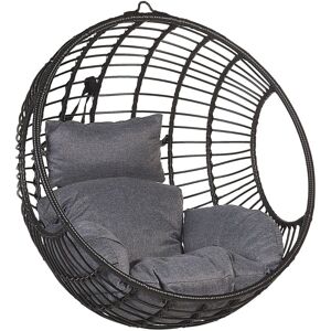 Swing Chair without Stand for Indoor and Outdoor Use. Hanging wicker chair is a stylish piece that will deliver utter comfort after a long day thanks to the soft and thick cushions. The basket is made of PE rattan which makes it durable and kept in the trendy boho style. Hang the swing chair in the living room, by the window or in front of the TV, or in the balcony to enjoy the fresh air. Details: Product Type: Hanging Chair Style: Retro General Color: Black, Grey Material Type: PE Rattan Main Material: PE Rattan Additional Material: Steel Seat Material: Fabric Material Composition: 100% Polyester Seat Foam Density: 25 kg/m3 Dimensions: Depth: 65 cm Seat Thickness: 15 cm Width: 99 cm Height: 99 cm Seating Surface: 99x65 cm Weight: 9 kg Weight Capacity: 90 kg Offer Includes: 1 x Chair, 1 x Seat Cushion, 1 x Pillow Key Features: Practical Ties to Ensure a Secure Attachment, Wide, Comfortable Sitting Surface, Creates a Cosy Atmosphere, Both for Indoor and Outdoor Use, UV Resistance 4