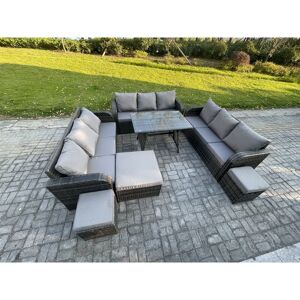 This 12 Seater Modern deluxe rattan garden furniture is best for multiple occasion. The Rattan set is strong durability which lasts for a long time, it also has strong tempered table top glass. Cushions are included and are fitted to the shape of the sofa and chairs for comfort. This wonderful product will help you showcase any garden, patio or conservatory. Set Dimensions: • 1 x Big footstool :65L x 65W x 34H cm • 2 x Fully Assembled small footstools:40L x 40w x 34H cm • 3 x 3 Seater Sofa :177W x67D x79H cm • 1 x Rectangular Dining Table :110L x 70W x 70H cm Dark grey mixed rattan with dark grey fabric .Color may some difference due to light or monitor .we are unable to return the item due to color problem . Items Comes Flat Packed And Easy Assemble,Sturdy Galvanized Steel Tube Metal Frames With Powder Coating To Prevent The Rust Flat PE Rattan Completely Made By Hand, 5mm Thickness transparent Tempered Glass With Sucker On Surface To Prevent Sliding Low Maintenance ,Removable