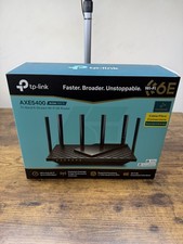 The TP-Link Archer AXE75 AXE5400 Tri-Band WiFi Router delivers ultra-fast speeds with WiFi 6E technology , supporting cable and fibre connections for seamless streaming, gaming, and multi-device performance . Overview: Upgrade your home network with the TP-Link Archer AXE75 . Featuring next-gen WiFi 6E , it opens the 6GHz band for faster speeds, lower latency, and reduced congestion. With tri-band connectivity (6GHz + 5GHz + 2.4GHz) and speeds up to 5400 Mbps , it’s built for demanding households with multiple devices. Equipped with OFDMA, MU-MIMO, and Beamforming , it ensures strong and stable connections throughout your home. The router also includes TP-Link HomeShield security , parental controls, and easy setup via the Tether app . Key Features: WiFi 6E Router – Faster speeds and lower latency with 6GHz band AXE5400 Tri-Band – Combined speeds up to 5400 Mbps Supports Cable & Fibre – Compatible with major ISPs OFDMA & MU-MIMO – Handles multiple devices simultaneously Strong Coverage – Six high-gain antennas with Beamforming technology TP-Link HomeShield – Advanced security and parental controls Easy Setup – Tether app for quick installation and management Ideal for Gaming & Streaming – Smooth, lag-free performance Gigabit Ports – Reliable wired connections for PCs and consoles Product Description: The TP-Link Archer AXE75 WiFi Cable & Fibre Router – AXE5400 Tri-Band delivers cutting-edge performance with WiFi 6E technology . Unlocking the 6GHz frequency , it provides faster, interference-free connections, perfect for gaming, 4K/8K streaming, and smart homes. With tri-band speeds up to 5400 Mbps , six powerful antennas, and technologies like OFDMA and MU-MIMO , it ensures stable connections across multiple devices. Added features like TP-Link HomeShield provide enhanced security, while the Tether app makes setup and management simple. Compatible with both cable and fibre broadband, it’s the perfect router for future-ready home networking.