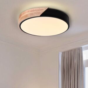 This exquisite round ceiling light blends natural wood, sturdy metal, and high-quality acrylic, creating a unique visual appeal. The natural wood adds warmth, while the acrylic shade softens the light for a gentle, eye-friendly glow. Featuring a built-in 20W LED, this energy-efficient fixture is perfect for any space. With the included remote control, easily adjust the light's color temperature between 3000K warm light, 4000K neutral light, and 6000K cool white, without the need for an additional wall dimmer. This versatile light enhances both functionality and aesthetic charm. Ivy Bronx Size: 5cm H x 30cm W x 30cm D, Fixture Finish: Black