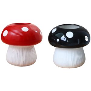 Mushroom Vase - This cute ceramic vase mimics the appearance of mushrooms, cute, , novel, very cute and interesting. High Quality Material - The handmade ceramic mushroom flower vase is made of Resin and glazed by hand. It feels smooth and comfortable, perfectly reproduces the textured details of the mushrooms and brings the vase to life. Easy to Use - The mushroom vase has a large top opening, which makes it easier to load and unload flowers, office supplies or anything else that needs to be organized. The vase has a flat base and can be firmly placed on the table without tipping over. Widely Used - modern bohemian flower vase as home decor. Makes a stylish decorative centerpiece for your living room, kitchen, bathroom, office, bookshelf or dining table. Can be used as a holder for desk pens or bedside candles. Colour:Red & Black Material:Resin Size:8x8x8cm Package Contents: 1 * Red Mushroom Vase 1 * Black Mushroom Vase Only the above package content, other products are not included.