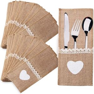 Material: Made of jute and lace. Soft, strong and durable, not easy to fade and deform. Size: 10x23cm(±5mm). The proper size can fit all kinds of knives, forks, spoons and other tableware. Enough to use and easy to store and clean. Package Included: 40pcs jute table knife bags. Simple and vintage style, there is lace on the front, more elegant. Add a retro atmosphere to your table decoration, perfect for daily use! Suitable for use in families, restaurants, hotels. Can carry and store various forks, knives, spoons and other tableware Tableware supplies. Ideal knife and fork decoration for weddings, parties, receptions, celebrations, birthdays, receptions, Christmas, parties, baptisms etc. Package: 40 pieces tableware bags (tableware not included)