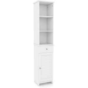Bring storage and elegance to your limited bathroom with this tall storage cabinet! The floor cabinet features a 2 open shelves, an utility drawer and a cabinet with door, providing ample storage space for various bathroom items and other items. In addition, adjustable shelf on the top and adjustable shelf of the cabinet create customized storage space. Additional features like smooth sliders, round knob and quiet door catch make the drawer and cabinet easy to open and close. This storage cabinet is made of premium MDF, which is stable and durable for long-term use. It is easy to assemble and you can fix it to the wall for stability. The stylish, slim storage cabinet is perfect for use in the bathroom, living room, bedroom, or corridor. Lark Manor Finish: Black