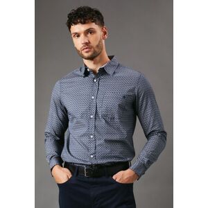 Men's Maine Mens Abstract Shape Print Long-Sleeved Shirt - Navy - Size: 42/Regular