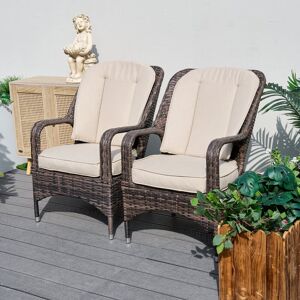 Create your personal oasis with our garden furniture set! This garden bistro set features two trendy leisure chairs and a stylish tempered glass tea table, making it great for relaxation and socializing. Each chair is adorned with a wide seat, firm backrest and armrest, providing a cosy seating experience. Elevate your outdoor space with these bistro table and chairs, adding a touch of fun and leisure to your everyday life. Experience serenity and style like never before!- Made of steel frame with a powder-coated finish, wrapped in weather-resistant PE rattan; - Chair can be stacked to save space when not in use; - 5 mm glass tabletop for durability and easy cleaning; - Adjustable foot pads keep this set stable on uneven floor; - Handwoven rattan, adds aesthetic to your gardens and balconies; - Great for balcony, terrace and garden; - Assembly required;- Colour: Black; - Materials: PE Rattan, Steel, Tempered Glass; - Chair Dimension: 55W x 63D x 72H cm; - Table Dimension: Ф50 x 71H cm; - Seat Size: 45W x 39D cm; - Seat Height: 45 cm; - Backrest Size: 34L x 33W cm; - Weight Capacity: 120 kg (chair), 30 kg (table); - Item Label: 863-138V00BK; Lark Manor