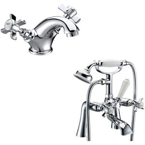 Classic Crosshead Mono Basin Mixer Tap and Bath Filler Tap Set - Chrome Give your bathroom a bold upgrade with the minimalist touch your bathroom has been missing. Perfect for bathrooms that balance function with flair. Engineered from high-quality materials, this tap set ensures long-lasting durability. Perfect for both high-traffic and luxury bathroom settings. Product Highlights: STYLE: A timeless design with softly rounded edges and classic detailing, these taps bring traditional charm with a fresh, clean finish — perfect for both heritage and transitional bathrooms. FINISH: In a crisp chrome finish that brings a touch of elegance to your bathroom, complementing a wide range of interior styles—from minimalist modern to timeless classic. EASE OF USE: Traditional turn handles provide a familiar, straightforward way to control water flow and temperature, designed to support easy operation in everyday settings. QUALITY MATERIALS: Made from premium materials with a high-quality finish,