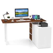 Description:Still looking for a versatile yet sturdy corner desk? This triangle computer desk with compact size would be worth considering. The corner desk featuring triangular design can perfectly fit room corners and avoid space occupation, easy left and right replacements for different needs. The wide desktop and bottom storage shelf provide abundant storage space for office supplies, laptop, books, lamp, printer and potted plant. Meanwhile, the built-in charging station on the tabletop allows you to charge various kinds of electronics with ease. There are more prominent details to be explored in your daily life, such as adjustable foot pads and long enough wire. This desk is an aesthetically-pleasing piece for any decoration from rustic to modern, which works great as a computer desk, writing desk, corner desk for aquarium, vanity table, etc. Features:90 degrees triangular design perfectly fits into room cornerFlexible left and right replacements give you more choiceWide desktop