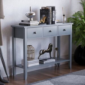 The console table, constructed from durable MDF and particleboard with a powder-coated finish, combines modern and classical aesthetics. Available in configurations of 1, 2, or 3 drawers and color options of white and grey, it offers versatility to fit into various spaces and complement different interior decors. The ample storage provided by the drawers and the shelf underneath is perfect for organizing items such as car keys, files, and books, while the tabletop serves as an ideal space for displaying decorative pieces or air scents. This thoughtfully designed console table not only enhances the functionality of your living space but also adds a touch of elegance. Fernleaf Size: 74 H x 50 W x 30 D cm, Colour: Grey