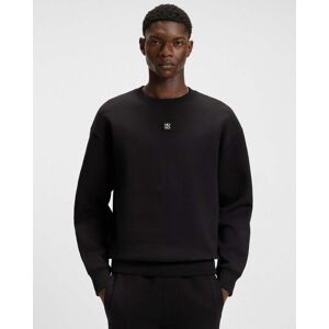 This HUGO Dettil men's sweatshirt features a relaxed fit crafted from a soft cotton blend with stretch for comfort. It has a classic crew neckline, long sleeves with ribbed cuffs, and a slip-on design for easy wear. The garment is finished with a subtle stacked-logo badge, adding a touch of branding. Made from 82% cotton, 13% polyester, and 5% elastane, it offers a comfortable fit with flexibility. Ideal for casual occasions, this versatile layer provides a relaxed silhouette and easy styling options. Its simple yet refined design makes it suitable for everyday wear, combining comfort with understated style