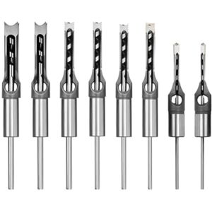 Please note: the physical slightly color difference or difference, does not affect the use, please do not mind, thank you! Quality Material: These square hole drill bits and wood mortising chisel set are crafted with high-speed steel, ensuring durability and . The HRC48-50 hardness guarantees their ability to withstand heavy-duty woodworking tasks. Versatile Woodworking Application: Designed specifically for woodworking, these square hole drill bits and chisels are perfect for creating precise square holes in wooden materials. Whether you're working on furniture, cabinets, or other woodworking projects, these tools provide the accuracy and efficiency needed to achieve clean and professional results. Enhanced Precision and Finishing: When using these drill bits, you can achieve tidy square holes. However, for the finer details, it is recommended to chisel by hand. This additional step ensures that the square holes have a polished and refined , enhancing the overall quality of your