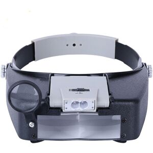 HEADBRAND Magnifying Glass: Premium Lightweight Headband Magnifier with Hands-Free Visor Light The magnifying glass brings a detailed, hands-free, variable magnification view to your hobby. A bright LED light in the front center illuminates your vision. Can also be used as a headlamp. Powered by 2 AAA batteries (not included). EASY TO WEAR: Quick-adjust headband with ratchet mechanism - simply turn the knob to tighten/loosen when wearing. Adjustable side pivots allow the visor to be tilted with the touch of a finger and can be controlled to adjust the LED beam. This head and magnifying glass is suitable for reading, jewelry identification, watch repair, craft making, painting, sewing, weaving, manicure, eyelashes, sculpture, inspecting artwork or collectibles, electronics, mechanical devices, etc. Product magnification: 1.5 times/3 times/9.5 times/11 times