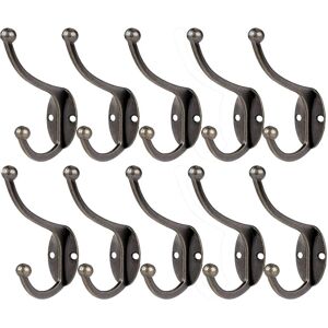 [MEASUREMENT HOOK AND SCREW] These two-pronged hooks are designed in modern style and black color. Its smooth surface makes it perfect for hanging coats, hats, towels, handbags, etc. These hooks are very easy to install. One hook is reinforced with 2 screws so they can work together to store your items. [DOUBLE COAT HOOKS] These wall hooks are strong enough to hold 2 or more items. The classic style matches most home decor and provides plenty of space for hanging items in the entryway, laundry room, bathroom, bedroom and closets. Items like clothes, hats, Christmas gifts, etc. [DESIGN DESIGN] The dimensions of the hooks are 5.7*6.2*9.8cm. These hooks are different from other traditional hooks because they are designed with a double claw that can support heavier items when mounted into solid wood or wood studs. They are bronze in color and have a classic style that will show off your uniqueness. Try it to your friends or neighbors. Unused screws will be a gift for you [STURDY MATERIAL]