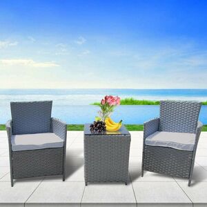 This Furniture One outdoor bistro set is great for any patio, garden, porch and similar spaces. Frames of the rattan bistro set is made from powder coated steel mean a strong structure, wrapped in plastic wicker for garden rattan style. UV and water resistant. Matching table gives a handy side surface, with a safe and sleek glass top. Repeat and use, season after season. Specifications ● Material: Metal, Brushed PE Rattan, Tempered Glass ● Chair: 60x56x80cm ● Coffee Table: 40x40x52cm ● Seater depth: 47cm ● Chair Weight Capacity:160kg ● Tea Table Weight Capacity: 50kg Features ● Set comes with two garden chairs and matching side coffee table ● Strong powder coated steel frame, wrapped in durable plastic wicker ● Padded cushions for comfort. Removable and washable covers ● Sleek and safe tempered table top ● Two-tier table for extra holding room ● Assembly Required