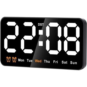 Small Digital Wall Clock with Large Numbers - LED Wall Clock has 2.7 inch large numbers. Huge digital display that makes it easy to read the time from across the room. It is very suitable for the elderly, elderly or people with poor eyesight as it can clearly show the time. Two Power Modes - Powered by plug-in or 3 AAA batteries (not included). In battery powered mode, the clock features voice control. When you make some kind of sound or click on the clock, the screen automatically light up to show the time for 10 seconds to save power. 3-Level Brightness Adjustable - The LED digital clock is equipped with a 3-level brightness display. The wall clock is also equipped with a night mode, which can adjust the low brightness from 22:00-06:00, save energy, protect the environment, and create a comfortable sleeping environment . Two display modes-big digital and small wall clock provides 2 display modes to choose from, one only displays time and day of the week; the other is time, week,