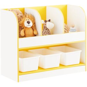 Modern design children storage shelf will blend perfectly with any decor. Bus shape design makes it bring lots of fun for the kid. 2 storage compartments provide ample storage space for the books, toys, etc. With 4 bamboo wheels, the shelf can be moved easily and quietly. Rounded corners and edges ensure that your kid does not injure himself when playing alone or with his friends. Made of high quality MDF in white lacquer. The wheels are made of bamboo with varnished coating. Stable and durable. Good looking as well as space saving, good choice for organizing books and toys. The cute bus shape will attract children's attention, make children fall in love with this storage shelf and develop the habit of organizing things. Product Details Material: MDF, bamboo. Dimensions: W68 x D43 x H33cm. Weight: 8.6kg. Load capacity: 20kg. Item comes in a flat pack and requires self-assembly. Detailed instructions supplied. The decorative elements are not included in the delivery.