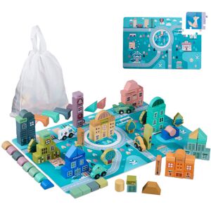 These building blocks in a large set offer hours of fun for little builders. At the same time, assembling buildings and designing their own city stimulates the imagination and enhances motor skills and spatial awareness. By using numbers and arithmetic symbols, children learn mathematical concepts through play. The colourful wooden building bricks are perfect for pre-school children and are a must-have in any child's room. Note: Not suitable for children under 36 months due to choking hazards from small parts. Wooden Building Blocks in Detail - Size of the blocks: approx. 1.8–9 cm - Puzzle mat W x D: approx. 58.5 x 38.5 cm - Design A total weight: approx. 1.9 kg - Design B total weight: approx. 2.1 kg - Material: Wood - Colour: Multicoloured Building Bricks for Children - Large building block set with a puzzle mat for creating an urban environment - Wooden blocks featuring buildings promote motor skills, spatial awareness, and creativity - Numbers and arithmetic symbols to enhance