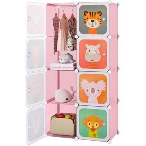 If you always have baby's clothes or toys cluttered here and there, this 8-cube storage organizer will be a good solution. First and foremost, the kid's room armoire features plenty of storage space to hold the sundries and keep the room clean. There's even a hanging section for baby's clothes. What's more, it can be freely combined according to specific needs, being used separately or be stacked for narrow corners. Usually it is combined for larger space. And the 2 x 4 cube organizer has cute patterned doors, which not only hide the mess, but also decorate the space. And tool-free assembly means you can easily put the wardrobe together without professional skills or technical tools.