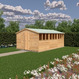 GENERAL DESCRIPTION This 10' x 20' double door overlap apex shed is an attractive feature for any garden. It provides plenty of light through twelve fixed acrylic windows, which can be fitted on either side. The double doors and generous eaves height allow easy access to the entire space. TECHNICAL SPECIFICATIONS Dimensions: 10' x 20' Material: High grade, slow grown, FSC approved European pine cladding Framing: 34mm square Roof and Floor: Solid sheet OSB Windows: Twelve fixed acrylic windows Doors: Double doors with hasp and staple catch for padlock OTHER INFORMATION The building is dip treated with a basecoat, ready for top coating by the customer after installation. All fixings, roof felt, and assembly instructions are included.