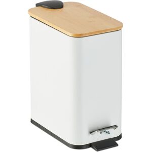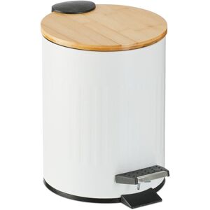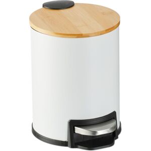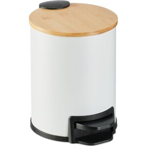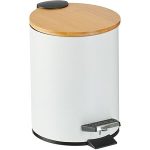 The round pedal bin is a hygienic and convenient way to dispose of sanitary waste in the bathroom and at the dressing table. The practical pedal allows you to open the waste bin hands-free, while the soft-close function ensures that the lid closes gently and quietly. The removable plastic bin with handle makes emptying the waste bin easy. With its matt finish and natural bamboo lid, the bathroom waste bin is visually appealing. Cosmetics Bin in Detail - Dimensions H x W x D: approx. 23.5 x 17 x 21 cm - Volume: approx. 3 litres - Weight: approx. 0.6 kg - Material: Iron, bamboo, plastic - In various colours Round Hygiene Bin with Soft-close Mechanism - For hygiene waste in the bathroom, guest WC or at the dressing table - Foot pedal for hands-free opening and closing of the toilet bin - Lid closes particularly gently and quietly thanks to the soft-close function - Removable inner bin with handle makes emptying easier - With handle on the back for easy carrying of the waste bin - Matt