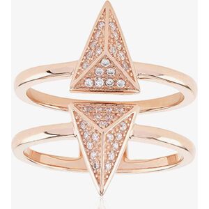 Pecetto di Valenza is a town in the Piedmont region of Italy, with an economy largely based on the production of grapes. Sif Jakobs takes inspiration from the diamond shaped trellis that grapes are grown along to create her diamond pattern range. The Pecetto range features diamond-shaped arrangements to create simple yet pleasing pieces, with a slight concave shape to provide interest and weight. Here the ring is composed of a mirror imaged arrow arrangement, utilising a split band to give the appearance of stacking rings. - Rose Gold-plated Sterling Silver - White Cubic Zirconia - Concave shape