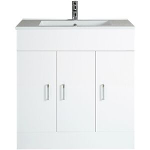 GENERAL DESCRIPTION The 805mm Minimalist Gloss White Vanity Unit with Ceramic Basin is perfect for a cloakroom and offers practical storage for a bathroom, shower room, or en-suite. It features soft-close cupboard doors and stylish chrome zinc alloy handles. TECHNICAL SPECIFICATIONS Dimensions: 810mm x 465mm x 818mm Moisture resistant FSC certified engineered wood construction Gloss white finish Includes cupboards with soft close technology and chrome handles Hard wearing ceramic basin with 1 tap hole Basin fitted with an overflow (slotted waste not included) Tested and certified to meet EN14749 and EN14688 standards OTHER INFORMATION This product requires assembly and is supplied flat packed for easier home delivery. Please note: tap, bottle trap, and waste are not included.