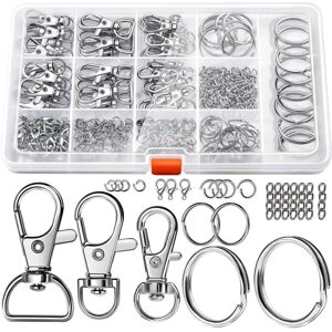 [Package]as Accessories Combination for DIY Lanyard Snap Hook, Keychain Charms/Crafting and Purse Hardware. [Usage]Perfect for Keychain Clip, Swivel Lanyard Snap Clips, Key Charms/Crafting, Jewelry Making, Mask Holder/lanyard, Key/Pet Tags, Handmade Dog Collar, Backpack Bows, Purse Charms, luggage strap, Gardening Decoration, Beaded lanyards, Necklaces. [Quality]Solid and Key Chain Clip, Improved Spring Clip can be Opened and Closed more than 5000+ times in our test. Carrying Capacity can Basically Meet Uses in . [Material]Rotatable Snap Hook with Key, Made of High Quality materials, Anti-Rust with Silver Shiny Finishing. Material: Metal colour: Silver Package Contents: 10 x D-shaped lobster clasps 15 x 3.6cm lobster clasps 20 x 3.2cm lobster clasps 50 x 12mm crayfish clasps 50 x 7mm open rings 50 x 10mm open rings 30 x 14mm keychains 20 x 4-section twist chains 10 x 2.5cm keychains 10 x 2.8cm keychains Only the above package content, other products are not included. Note: Light