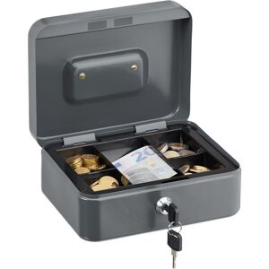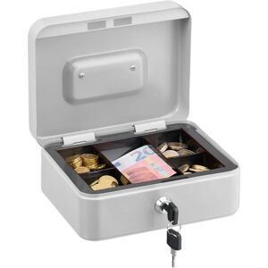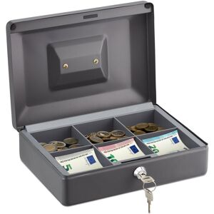 If you want to store cash safely, this cash box is the right choice. The cash box is suitable for use at home as well as at flea markets, fairs and other events. The removable insert with 5 compartments allows you to sort hard cash by value so that you always have an overview. There is space for notes and receipts in the compartment below. The cash box can be securely locked and easily transported using the carrying handle. Cash box in detail - Dimensions H x W x D: approx. 8.5 x 20 x 17 cm - Weight: approx. 0.8 kg - Material: iron, plastic, steel - In various colours Cash box with lock - For storing cash, coin rolls and receipts - Lockable cash box for secure cash storage - Removable insert for quick sorting and removal - Easy to transport thanks to retractable carrying handle - Sturdy cash register made of robust iron with powder coating - For clubs, fairs and flea markets, school events and much more Scope of delivery - 1x savings cassette - 2x keys - Decorative items are not