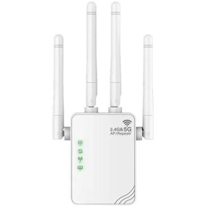 Function 1: WiFi Repeater, WiFi Extender, WiFi Amplifier, Wifi Booster Feature 2: Wireless WiFi repeater Feature 3: 1200M WiFi repeater Feature 4: 1200Mbps Wi-Fi amplifier 5G Wi-Fi transmission rate:867Mbps Wired transmission rate:None Wi-Fi transmission standard:802.11n 2.4G Wi-Fi transmission rate:300 Mbps Wi-Fi supported frequency:2.4G & 5G Standards and protocols:Wi-Fi 802.11g, Wi-Fi 802.11b, Wi-Fi 802.11n maximum. LAN data rate:867Mbps Whether with modem function:No Type:Wireless Dual band:2.4Ghz and 5.8Ghz Plug Type:US Plug, it applies to Canada, India, Mexico, Thailand, , the , the Philippines and so on. Voltage:AC110V Colour:White Material:ABS Package Contents: 1 * Repeater 1 * Power plug Only the above package content, other products are not included. Note: Light reflection and different displays may cause the color of the item in the picture a little different from the real thing. The measurement allowed error is +/- 1-3cm.