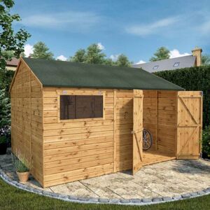 The 18ft x 10ft Shiplap Reverse Apex Modular Workshop is a great option if youre looking for a flexible space, specific to your needs. Each panel within this building has been intricately designed to be interchangeable. Want the doors at the back? Easy! Need a window on both sides? Done! Simply pick your desired size and construct your workshop in the way that suits you. Two shatterproof Styrene glazed windows provide this workshop with a bright interior. The vast size of the internal space is ideal for installing workbenches and additional tool storage. A large set of double doors make accessing your workshop super easy. Making this the ideal garden building for your workshop needs. Manufactured right here in the UK, using FSC® certified timber so you can be confident in the quality of this wooden building. Shiplap tongue and groove cladding form the walls of this structure creating a workshop that is strong and weatherproof. The Shiplap profile is also aesthetically pleasing due to its smooth finish. Thick wooden framing completes this building, providing a reliable workshop for you to enjoy for years to come. Heavy-duty tongue and groove boards also form the floor and roof of this workshop creating a hard-wearing surface, that is ideal for the storing of heavier items and general daily use. High-grade mineral felt and robust fixtures and fittings are all supplied as standard with this workshop alongside detailed instructions, to ensure a simple and stress-free build. This modular wooden workshop comes with a 10 year Anti-rot guarantee. This ensures your garden building looks great and stands the test of time. Just make sure to treat your workshop annually with a wood preservative and a waterproof top coat. Then your guarantee will be good to go!