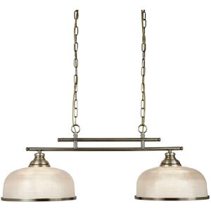 Specification Searchlight Bistro - 2 Light Ceiling Pendant Bar Satin Silver, Acid Glass, E27 Finish: Satin Silver IP Rating: IP20 Height (cm): 82 Length (cm): 76 No. of Lights: 2 Lamp Type: E27 Dimmable: Yes Wattage (max): 40 Weight (kg): 2.5 Class: 1 (Earthed) Bulb Included: No Description This is a large collection with a special character. The fittings are suitable in any setting, be it a modern design or a more classic one. The range is available in more than one finish, and a large variety of styles, allowing you to match up your light fittings. The range is perfect for any size room. This two light pendant is available in five light, three light and single versions as well as a matching wall light. All fittings are also available in antique brass.