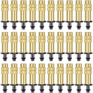 Adjustable Design - The adjustable irrigation spray nozzle adopts the flow adjustment design, which is easy to adjust and control the spray flow to water the plants and flowers in your garden. Working flow: 7-120 L/H, Working pressure: 1.5-4 kg, Spray radius: 0.6-1.2 M. Removable Nozzle - The copper drip nozzles can be disassembled for easy and convenient cleaning. Easy to Install - The copper emitter nozzle is easy to install and use, just connect it to the 4/7 capillary tube or PE tube. Able to maintain constant irrigation uniformity during long periods of installation or pressure fluctuations High Quality - Adjustable copper atomizing nozzle made of high quality engineering plastic and copper, which can be used for a long time for high temperature resistance, corrosion resistance and wear resistance. Package Included - There are 30 pieces of adjustable spray nozzle in the package, enough quantity to meet your watering and replacement needs, which you can share with others or as a