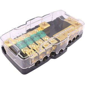 Made of high-quality materials, . Power distribution ground block for car camping power supply solar panel battery ATV UTV caravan trailer boat and other power distribution. Sand nickel-plated contact connector, not easy to fade. With Clear removable case. Works with 12V-24V DC battery 4 way Fuse Block includes 4pcs 60A fuses 2 IN 4 OUT Battery Distribution: Input: 2 x 0/4GA; Output: 4 x 4/8GA Material: Copper+Plastic colour: As shown Package Contents: 1 x Fuse Holder With Fuses Only the above package content, other products are not included. Note: Light reflection and different displays may cause the color of the item in the picture a little different from the real thing. The measurement allowed error is +/- 1-3cm.