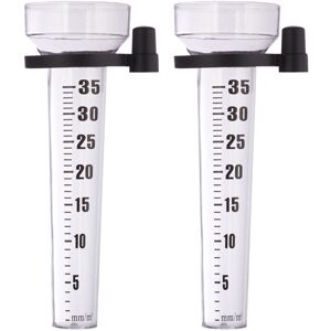 This set of 4 rain gauges is perfect if you want to find out how much rain has fallen quickly and easily. The large digits make it easy to see how much rain has fallen, even from a distance. There are plenty of options for the position of the rain gauges in your garden. This is made possible by suitable holders that can be easily attached to a stick or branch. The water meters are made entirely from durable and weatherproof plastic. Note: For accurate results, the container should hang as straight as possible. Set of 4 Rain Gauges in Detail - Dimensions with holder H x W x D: approx. 24.5 x 10.5 x 8.5 cm - Holder for rods with a maximum diameter of approx. 16 mm - Display: up to 35 mm/m² - Display material PP, PS - Weight each: approx. 70 g - Colour: Transparent/black Garden Rain Gauge - Easy to determine the amount of rain - Large numbers easy to read from a distance - Comes with matching black holder - Remove tube from holder to empty - Sturdy and weatherproof plastic