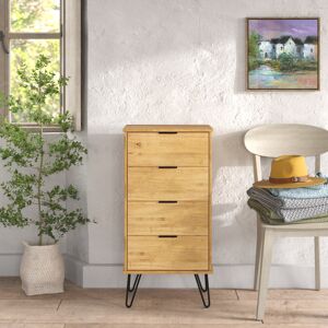 Industrial-style hairpin legs and pull handles add bold and eye-catching details to this chest of drawers, solving your storage woes with a splash of contemporary style. Four deep drawers are ideal for storing clothing, linen, games, electronics, media, and more, while the antique wax finish and the Black metal hair pin legs adds a stylish element that won't overwhelm your existing décor. Assembly is required. Hykkon