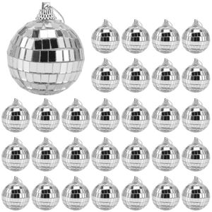 Foam made inner ball covered by tiny solid glasses can secure mirror on the right place without moving, and easy to install. mirror disco ball can be easily hung anywhere where you want, such as Christmas tree, window or walls, party and home decorations. It's easy to set a happy atmosphere and embellish beautiful. Our mirror disco balls adopt classic silver design, the covered with shiny mirrored squares, through the illumination of the light, reflect the charming and shining light, easy to enhance the happy memorable atmosphere of the party. disco mirror ball is widely usded for and home discos and themed party decoration, Halloween party, Christmas, weddings, birthday, family gatherings, New Year Party, KTV, stage, performance, . color:Silver Material:foam+glass size:Diameter 5cm Package Contents: 30 x Disco ball Only the above package content, other products are not included. Note: Light and different displays may cause the color of the item in the picture a little different from