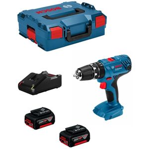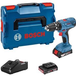 A cordless combi drill on the Bosch Professional 18v lithium ion battery platform, the GSB 18V-21 is suitable for driving screws, drilling into wood, metal and plastic, and for hammer drilling into masonry. This entry level professional grade tool is powerful, robust and fully guaranteed for everyday professional use. The machine has two gears, forward/reverse, a variable speed trigger, keyless 13mm chuck, seperate modes for screwdriving, drilling and hammer drilling, and an adjustable clutch with 20 different torque settings. Specifications • Battery Voltage: 18v • Battery Type: Bosch Pofessional Lithium Ion • Torque (soft/hard): 21/55 Nm • No-load speed (1st gear / 2nd gear): 0 – 480 / 0 – 1,800 RPM • Max Impact Rate: 27000 BPM • Chuck capacity, min./max: 1.5 / 13 mm • Torque Settings: 20+1 Features and Benefits • Reliable and powerful entry model in the Bosch Professional 18v range • Sufficient performance for main applications due to 55 Nm hard torque • Full metal gearing and electronic cell protection (ECP) for long term durability • Electronic Motor Protection automatically shuts off motor if critical overheating or overload occurs • Keyless 13mm chuck for rapid bit changes • Two gears • 20 Torque settings plus drilling mode • Compatible with all Bosch Professional 18v lithium ion batteries Contents • GSB 18V-21 Cordless Combi Drill • 2 x GBA 18v 2.0ah Battery • Charger • 136 L-BOXX Carry Case