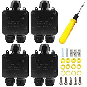 [4 pieces distribution box outside IP68] IP68 junction dose of waterproof, dust-dust-dust function, high-quality waterproof flame-retardant PC material, which is fireplace, shockproof function, waterproof silicon seal, UV sun protection and rain protection, these functions make sure that it can be used under the sun or on . [Cable specifications] Equipped with 3 sets of different sizes, waterproof sealed rubber rings, suitable for all types of wires.Available cable diameter: 5-9 mm, 9-12 mm, 12-15 mm, perfect for repairing and extending power cables.With waterproof sealing rubber rice and sealing screw for complete sealing. [Easy to install] The junction box can be easily installed underground and offers you full protection of the cable line.Equipped with wall screws and screwdrivers for easy installation.The 3-way connection box is your for connecting outside lamps and lanterns. [Broadened] This waterproof junction box is perfect for outside and inside. For home, garden or farm,